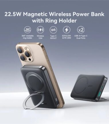 JOYROOM 22.5W Magnetic Wireless Power Bank with Ring Holder 10000mAh-Black 3C