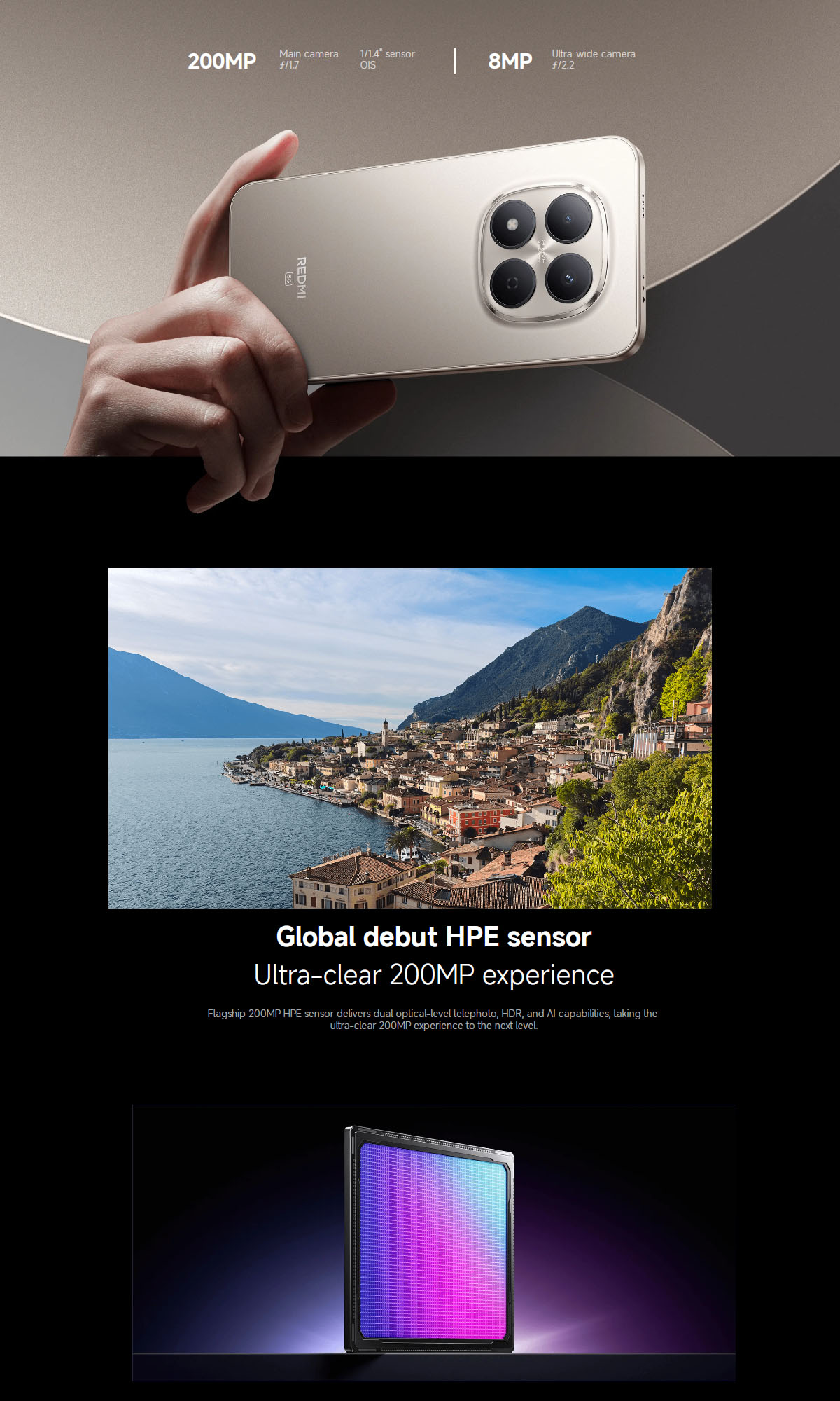 Rear Camera 200MP main camera, 8MP ultra-wide camera