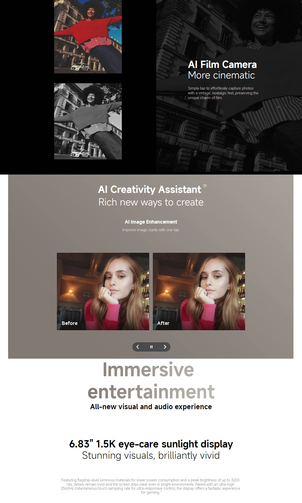 Display (inches) 6.83″ CrystalRes AMOLED display, Refresh rate: Up to 120Hz, 3200 nits peak brightness